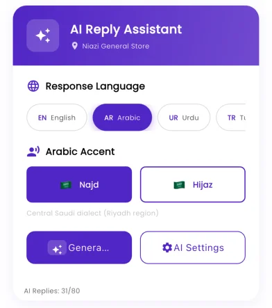 AI that speaks Saudi, not just Arabic, real Saudi dialects: Najd, Hijaz, English and more. Craft authentic, on-brand replies in seconds. Save up to 80% of your time and never leave a customer unanswered.